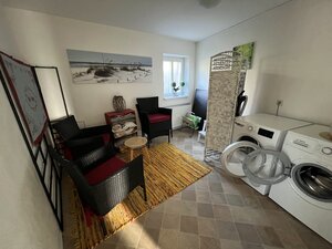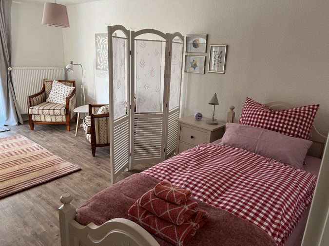 Fotogalerie Haus Mühlenstr. 109Wohnzimmer Esszimmer Direkter Zugang vom Schlafzimmer zum Bad Rotes Zimmer, 16qm Blaues Schlafzimmer, 12qm Zugang zur Wohnung über Seiteneingang Garten vor der Wohnung